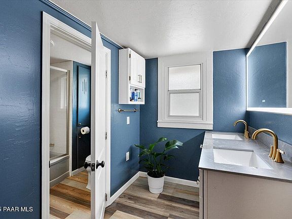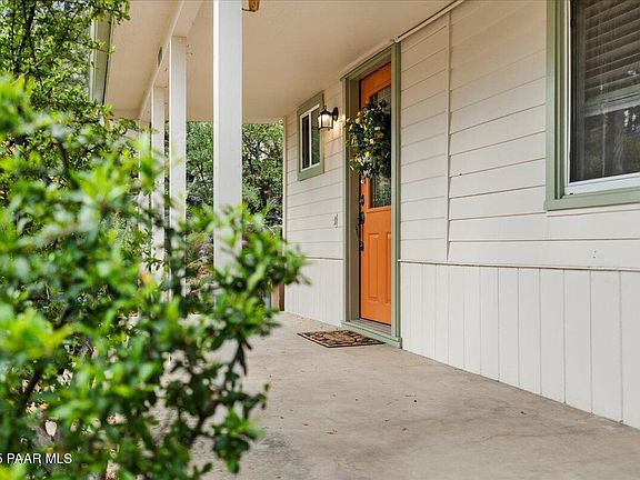 Gorgeous renovated home close to Thumb Butte in beautiful wooded location just two miles west of courthouse square. Main house has large windows, newly renovated bathroom, new central heat/air, new waterproof flooring, and new smart pellet stove. Plans for kitchen renovation available. Spanish-style guest house recently finished (everything is new!) and has successful short-term and vacation rental history. Seller is offering credit to cover new kitchen cabinets and quartz countertop including plumbing and installation.