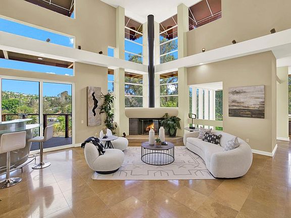 Unique Custom Contemporary Estate This one-of-a-kind, European-inspired custom home offers resort-style living in a private, serene setting that feels like the countryside yet is just minutes from shopping, top schools, and UC San Marcos. Nestled next to the San Marcos Golf Club “The LINKS,” the property combines open-concept living with thoughtfully defined spaces, featuring sun-filled rooms, soaring ceilings, and a striking mix of bamboo wood and travertine floors. The chef’s kitchen boasts KitchenAid appliances, dual ovens, six-burner gas cooktop, farmhouse sink, granite counters, and walk-in pantry. Four en-suite bedrooms include a master suite with sitting area, electric fireplace, and peek-a-boo ocean views. Additional spaces include a mezzanine, home theater/game room, office, and light-filled laundry/craft room. Outdoor amenities feature a putting green, pitching area, driving cage, swim spa, in-deck spa, fire pit, waterfall, flagstone patio, A VERY SECURE DOG RUN and smart lighting. The home is sewer-connected (rare in the area), turnkey, with full ADU and Jr. ADU potential, and has no HOA or Mello-Roos.