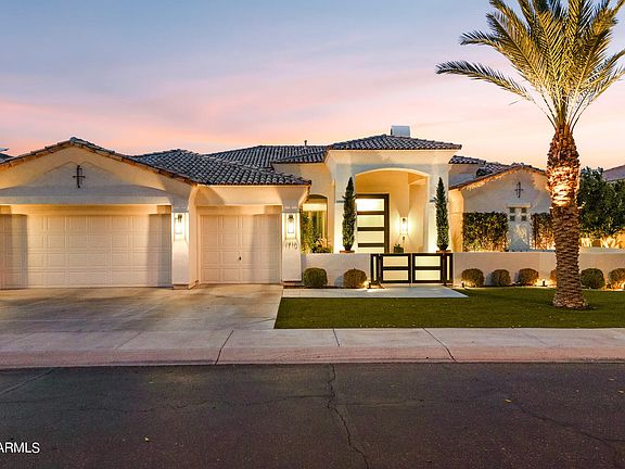 Stunning lakeside home located in a highly sought-after Ocotillo gated community in South Chandler. Walk through the gate into a charming courtyard with cozy sitting area and open the custom 10' steel front door to find smooth walls & soaring 12' coffered ceilings offering an airy & elegant atmosphere. The great room features German-engineered Nana Wall collapsible doors that frame breathtaking views of the lake & seamlessly open to the patio creating a large space perfect for relaxation & entertaining guests in style. A surround sound system extends t/o the home including the front & back yards. The kitchen will delight any gourmet with its top-of-the-line GE Monogram appliances including a built in pizza oven & ice maker. The quartzite countertops with stunning waterfall edge add beauty & functionality. Adjacent to the kitchen is the dining area where you can enjoy your meals while taking in the picturesque lake views. The glass-enclosed office features built in cabinetry with marble countertops, and is a bright space that's ideal for remote work or creative pursuits. The large master suite is a spacious spa-like retreat featuring a cozy fireplace and luxurious bathroom with walk-in shower with rain head, & an amazing 53-jet Hydrospa tub with fireplace and TV wall for the ultimate in relaxation. The crown jewel of this home is the oversized premium lakeside lot boasting a sparkling pool & a ramada that provides a wonderful spot to relax & soak in the amazing sunsets. The outdoor space with built in grill and surround sound is also great for entertaining. Add to this, just steps away is your own private access to the lake where you can boat, kayak or fish. If you're looking for the perfect turn-key home in a wonderful neighborhood, you need look no further.