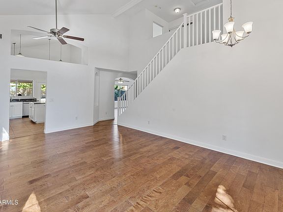 Located in the Ahwatukee Foothills and Foothills Club West community, this well-presented three-bedroom, three-bathroom home offers comfort, privacy, and modern style with its own private swimming pool. Recently redecorated and freshly painted throughout, the home feels bright, clean, and inviting. One of the bathrooms has been updated, adding a touch of contemporary appeal. The spacious open-plan layout features vaulted ceilings, dual-pane windows, and a kitchen with granite countertops, an island, and a pantry, ideal for everyday living and entertaining.The family room opens directly to a covered patio and a backyard with a sparkling private pool, perfect for relaxing or hosting gatherings. Upstairs, the primary suite includes a separate tub and shower, dual sinks, and a walk in closet.