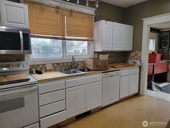 Beautiful vintage home in historic district of Everett. This home truly is a diamond in the rough as many original features have been preserved. Hardwood floors, beautiful moldings throughout, large windows, and spacious front porch. Large eat in kitchen, living and dining rooms. The first floor is complete with a bedroom, bathroom and walk-in closet. Upstairs you will find a large primary with walk in closet, third bedroom and a full bathroom with plenty of storage. This home sits on a large double lot, has a detached 2 car garage, shed and plenty of space for an ADU. Tons of storage space in this home. Walking distance to Grand Ave Park, schools and restaurants. Newer windows, roof and central heat. Located In a great neighborhood.