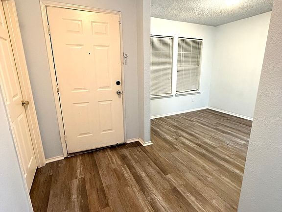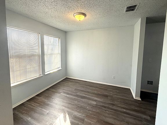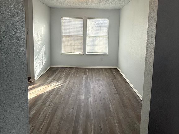 Freshly painted home with new flooring including new carpet in bedrooms, new wood flooring throughout the rest of the house and new dishwasher. Nice one-story 3-bed, 2-car-garage home in Oak Hollow neighborhood with community pool, park and walking trails. Ceiling fans and open floor plan. Large fenced backyard with covered patio to relax.
