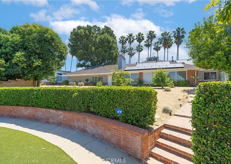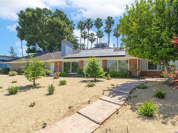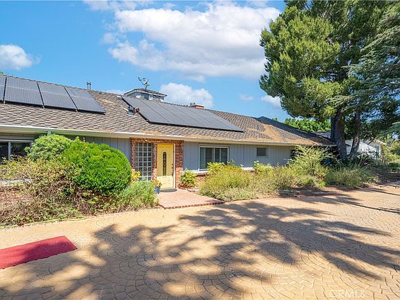 Discover a perfect blend of modern sustainability and classic charm in this beautifully maintained, solar-powered home. Nestled in a tranquil neighborhood, this property offers an exceptional lifestyle with its extensive outdoor spaces and thoughtfully designed interior. As you approach the home, you are greeted by an elegant landscape featuring lush greenery, mature trees, and a charming brick pathway leading to the main entrance. The picturesque front yard provides a serene environment for relaxation and outdoor activities. Step inside to find a spacious living room adorned with a brick fireplace and exposed beams, creating a warm and inviting relaxing space. Natural light floods the room, enhancing the ambiance for family gatherings or quiet evenings. Adjacent to the living room, the versatile dining area is ideal for casual and formal gatherings. High ceilings and an elegant stone feature wall add a sophisticated touch to the space. The kitchen, designed for the home chef, boasts ample counter space, modern appliances, and plenty of storage for easy meal preparation. The exposed brick and wooden beams add a rustic charm, creating a warm and welcoming environment. Culinary creativity is encouraged with features such as a double oven, a built-in stove, and a spacious layout. The bedrooms in this home offer tranquil retreats, each designed with comfort and relaxation in mind. The master suite includes an en-suite bathroom, providing a private sanctuary. Additional bedrooms are spacious and well-lit, perfect for family members or guests. Unique features such as a rustic bar area with wooden accents, and a custom-designed bathroom with modern fixtures ensure a luxurious living experience. A cozy library/study filled with bookshelves is perfect for a home office or reading nook. Outdoor entertaining is a delight with the expansive covered patio. The resort-style pool, surrounded by lush greenery, invites you to dive in and unwind. Versatile outbuildings offer additional storage, a workshop, or even a home office, catering to various needs and hobbies. A secure gated driveway and detached garage provide ample parking options, accommodating multiple vehicles with ease. This home offers easy access to local amenities, schools, parks, and shopping centers, ensuring convenience without sacrificing tranquility. Don't miss the opportunity to own this remarkable property that combines sustainable living with timeless elegance.