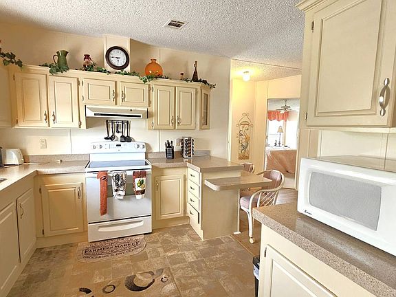 Welcome to this charming 2-bedroom, 2-bathroom manufactured home in a beautifully maintained gated 55+ community in Punta Gorda, Florida. Offering 954 sq. ft. of comfortable living space, this TURNKEY property is ready for you to move right in and start enjoying the Florida lifestyle. Step inside to an inviting open floor plan that seamlessly connects the living, dining, and kitchen areas-perfect for both relaxing and entertaining. The spacious master suite includes a walk-in closet and a walk-in shower, while the guest bedroom and second bath provide ample room for visitors. A large, enclosed lanai overlooks a lush, tree-lined backyard, creating a peaceful retreat. You'll also enjoy an open patio, two storage sheds, and a two-car carport for added convenience. Recent updates include a 2023 shingle roof and a 2011 central A/C system, New vapor barrier and updated pipes. This pet-friendly community offers resort-style amenities, including a heated screened-in swimming pool, clubhouse with planned activities, shuffleboard, dog park, and more surrounded by tropical landscaping. With a monthly lot lease of $782, you'll experience a vibrant yet relaxing lifestyle just minutes from shopping, dining, and all that Punta Gorda has to offer. Contact Lulu & David today to book your private viewing of this special Florida Gem!