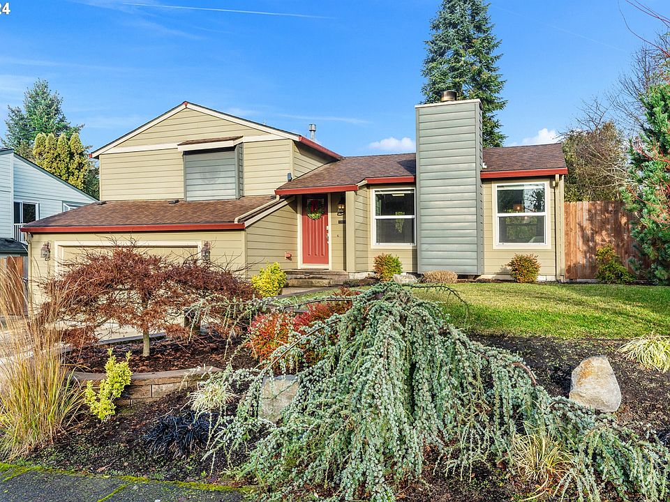 Awesome Cooper Mountain house in walkable neighborhood...the list of recent upgrades is extensive: 1558 square feet with new flooring both up and down stairs. 2023 kitchen remodel includes new quartz countertops, new tile backsplash, new and custom soft-close cabinets and drawers, new and over-sized sink, new faucet, new disposal. Stainless appliances. Living room with cozy, wood-burning fireplace. Spacious primary bedroom with new sink/vanity; second bath with new tiled shower/oversized tub. Lower level family room with slider to spacious, open, private backyard with gorgeous new hardscape. Other recent upgrades include new roof, new driveway, new electrical panel in 2015. New stainless kitchen appliances, toilets, front door, and knobs in 2016. New RV pad in 2017. New 95% efficient 2-stage furnace and AC, new siding and gutters, new exterior paint, new smart door opener, LED lighting in 2018. New deck expansion in 2019. New sprinkler system front and back, new front land-scaping, new window screens in 2020.... You get the idea!