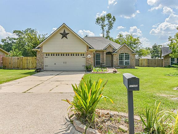 WELL MAINTAINED - Newport Subdivision Crosby. This potentially 4-bedroom home features 3 bedrooms, 2 bathrooms and a 2-car attached garage. Near the front inside entry of the house, you will find a study with a closet that could be used as a 4th bedroom. The layout is convenient with a formal living and dining area near the kitchen. Kitchen is open to the family room and also has a separate breakfast area. Family room is spacious with a fireplace with beautifully painted decorative wall colors throughout the house. Primary bedroom has plenty of room for large furniture. The en suite bath has a tub, separate shower and double sinks. The walk-in closet also has built ins for extra storage space. The split plan features 2 additional bedrooms and a laundry room opposite side of the primary bedroom. The attached 2 car garage is convenient with ample space. The back yard is larger than most with options for outdoor adventures.