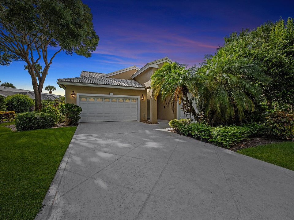 Welcome to luxury living in the highly sought-after Bridgegate community of Jonathan's Landing, a gated golf course neighborhood. This single-story courtyard home with a pool and rare private guest house offers 2,535 sq. ft. of beautifully designed living space. The main residence boasts soaring ceilings, bright open spaces, neutral tile flooring, and two oversized bedrooms. The master suite includes two walk-in closets and a spa-like bath. A 493 sq. ft. addition expanded the master bedroom and added a golf cart garage. The guest house, with its own separate entrance, features one bedroom and a living area, currently configured as a two-bedroom setup. This flexible space is perfect for visitors, in-laws, or a home office. Updates include renovated bathrooms, impact windows and doors throughout, and a lanai over the pool. Outdoor living is exceptional with a private courtyard pool and a serene lakeside patio.