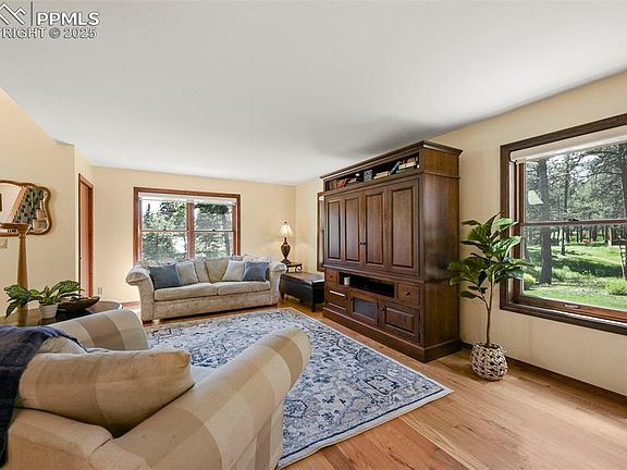 Nestled among the serene pines, this breathtaking 20-acre estate known as Black Forest Meadows offers the perfect blend of rustic charm and modern comfort. This property is currently operating as a sought-after wedding venue. The main residence features three bedrooms, a primary suite with walk-in closet and en-suite bath, generous living areas, inviting kitchen, recreation rooms, and elegant dining spaces that adapt seamlessly to a cozy home or large-scale entertaining. Practical touches such as a finished basement, ample storage, and a separate office for remote work or venue management enhance its functionality. The venue is fully permitted and includes a spacious reception hall with rustic-modern finishes, a bridal suite changing room with separate event bathrooms, a stable for livestock and charming areas designed for photography and celebration. The property boasts manicured lawns surrounded by forested beauty that frame a stunning outdoor ceremony site. The ceremony site has views of Pikes Peak. Offering value-add potential for those wishing to expand reservations into multiple weekends per season, the estate also includes the option of alpacas, a beloved favorite for fun and memorable wedding photography. Whether envisioned as a luxurious private retreat, a turn-key business opportunity, or a new brand of hospitality in Colorado’s vibrant wedding market, this extraordinary property combines natural beauty, versatile living, and event infrastructure in a tranquil setting that feels worlds away yet is an easy drive to Colorado Springs, Monument and Parker. Schedule your private tour today to experience the serenity that make this estate so remarkable.