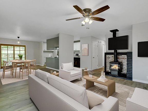 Cozy gas-log stoveRemodeled bathTwo bathsThree bedroomsAll new laminate flooring