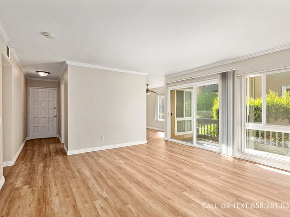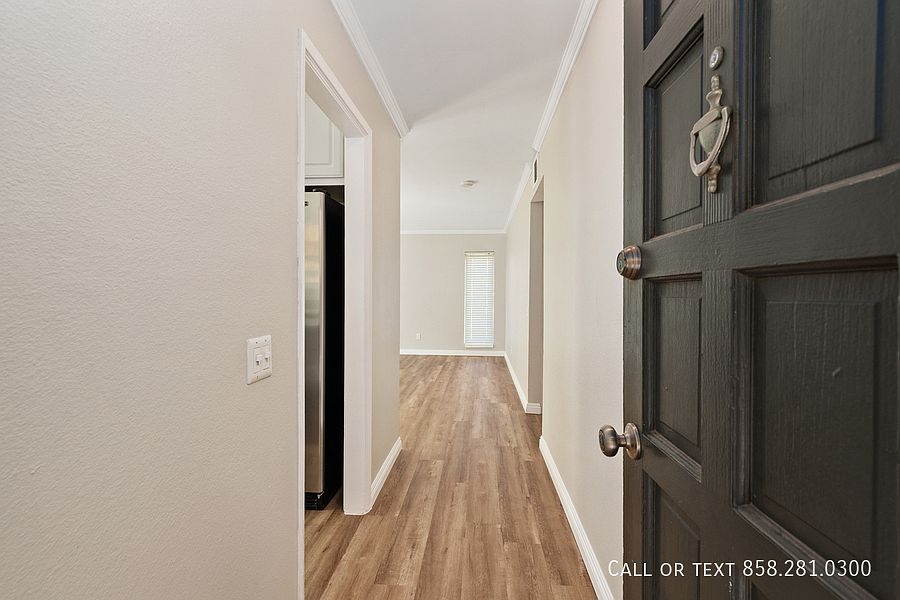 Immediately available 3 bed/2 bath condo in the desirable Waterbridge community in Rancho Bernardo! Spacious floorplan, beautiful crown molding, new paint, new laminate wood-look flooring throughout the main living areas and bedrooms, and central A/C! The kitchen features white cabinetry, gorgeous granite countertops, stainless steel appliances, and opens to the dining area. All of the bedrooms are generously sized, the large master bedroom features a private bathroom and the secondary bedrooms share a full-size hall bathroom. This unit has an enclosed patio off of the living room as a stacked laundry closet with late model washer and dryer included. Residents get to enjoy community amenities including a swimming pool, spa, outdoor cooking area, playground, gym, and a clubhouse. Conveniently located near schools, shopping, dining, and more! Located in the desirable Poway school district.