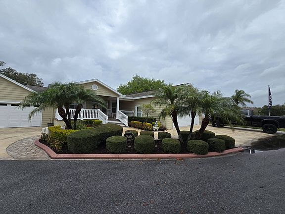 Triple Wide, 4 Car Garage, Open Plan, Nothing Short of Paradise!  Welcome to PARADISE! This STYLISH, IMMACULATE 3 bedroom/2 bathroom, TRIPLE-WIDE, 4 CAR GARAGE home wants for nothing! 3 yr old roof/2 yr old A/C units. Move-in ready, this piece of paradise can be yours! If you will, take advantage of this residence boasting luxury and lifestyle from floor to ceiling and in every corner! Enter the tranquil and stylish open front porch where you can imagine spending your mornings sipping coffee and enjoying your beautifully landscaped surroundings in tropical Florida! But the best is yet to come! Step inside - IT'S LIKE NOTHING YOU'VE EVER SEEN! This home has been tastefully sculpted with beautifully tiled floors and rich, gorgeous wood-planked laminate, and the stylish walls are complemented with finishing touches of crown molding throughout. Your palace awaits you! Love your spacious and lavish eat-in kitchen with all modern conveniences - refrigerator, range, dishwasher, microwave, and an open counter overlooking the eloquent and spacious living room adorned with a stylish fireplace. This home offers a rich and inviting ambiance for entertaining and socializing with family and friends. Recessed lighting, along with elaborate and elegant light fixtures/ceiling fans, completes the decor above, while beautiful plantation blinds adorn the windows throughout the home. Exquisitely sculptured ceilings add a modern touch to paradise! Enjoy restful evenings in the beautiful and spacious master suite while pampering yourself in the en suite bath with a double sink vanity, state-of-the-art shower, and a jacuzzi tub!  Extra rooms include ample space for an office, a workout or sitting area, and a guest room for company. Enjoy the gorgeous windows throughout, letting Florida sunshine in to brighten your days in paradise! The OUTSTANDING 4 CAR Garage boasts ROOM GALORE and offers the most ELABORATE finishing touches far beyond a traditional garage, built-in storage and a fashionable 'man-cave'. Pamper your treasured vehicles, recreational toys, and yourself in this spotless coach station attached to this AMAZING home! Situated in Silver Dollar Golf, Trap Club, and RV Resort, this lot rents for $1800 monthly, including water, sewer, trash pick up, and lawn care. This ALL-AGE, pet-friendly community is ONE-OF-A-KIND! Where else can you take advantage of three 9-hole GOLF courses, a 3-hole practice facility, a driving range, and pro shop?  Grab a game of golf, a tasty lunch and a cold one at the cafe, then scoot on over to the on-site shooting range to test your skills with trap shooting! That's right, there's a TRAP SHOOTING CLUB on location! This community is filled with many more attractions and amenities for residents: clubhouse, swimming pool, nearby beaches, nature/hiking trails, bike trails, fishing, and library. Join the fun with Bingo, card games, karaoke, dance, and more! Close to Tampa, Clearwater, St. Pete, Dunedin, Tarpon Springs, and New Port Richey, it has some of the best boating and fishing areas around! Visit the freshwater springs up in Weeki Wachi and swim with the manatees, kayak down Rainbow River or jump on your bike and cruise up north through the scenic ways of Old Florida. All listing information is deemed reliable but not guaranteed and should be independently verified through personal inspection by appropriate professionals. Our company does not and cannot guarantee or warrant the accuracy of this information or the condition of this property. Measurements are approximate. The buyer assumes full responsibility for obtaining all current rates of lot rent, fees, and pass-on costs. Additionally, the buyer is responsible for obtaining all rules, regulations, pet policies, etc., associated with the community, park, or home from the community/park manager. Our company is not responsible for quoting said fees or policies. Financing is available through 3rd party lenders. Tax, dealer fees, or admin fees not included in price