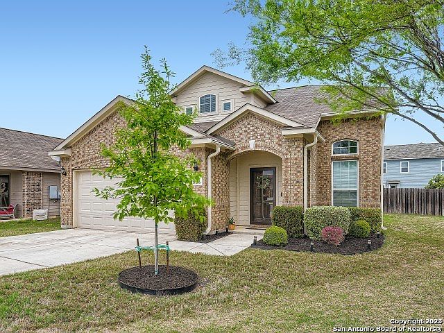 Comes with Builder's Warranty! This gorgeous, emmaculate 4 BR /2.5B / 2-Car garage home in Creekside Ridge sits on a .17-acre, culde-corner lot offering great spacing between neighbors and plenty of yard for pets & play! From its beautiful grand entry, to its high ceilings and open layout, natural light pours into the plentiful living & dining areas. The primary owner's retreat is down, lending to adult privacy while additional 3 bedrooms are up. The primary owner's bath is spacious with a large garden tub, separate shower, toilet room and the large closet with dual hanging rods & shelving completing this suite. Numerous home upgrades include: custom stair railing, tile throughout first floor except primary suite, granite countertops, SS appliances, large kitchen island, two eating areas, inground sprinklers w/drips, oversized backyard, finished/painted walls & sealed flooring in the garage. The aftermarket Leafguard gutters, glass security doors (front/back), open cell foam insulation in the exterior walls & acoustic window inserts in primary suite / bath and downstairs living areas repel outside noises making for a very quiet & relaxing home. The second floor living area & bedrooms offer grand space & natural light as well. Convenient to JBSAs Randolph & Fort Sam Houston, dining, shopping & entertainment. Come out & see this jewel!!