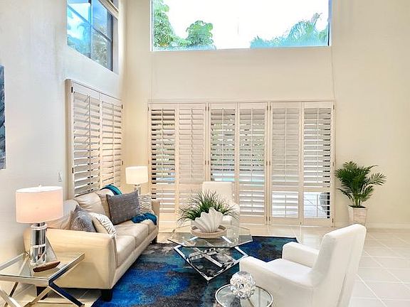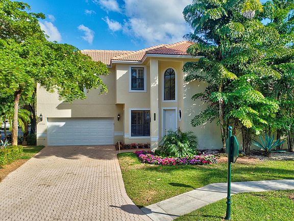 Light, bright, and airy 4 bedroom, 2.5 bath single family waterfront home with a pool and fabulous curb appeal in highly desirable Hampton Court at the Polo Club. This home is situated on a beautiful corner lot and has a great layout with lots of added bells and whistles. Brand new carpet in bedrooms, updated kitchen, newer roof (2008), plantation shutters throughout, newly diamond brited pool, new landscaping, neutral colors, and the list goes on. Fabulous open layout with a spacious master bedroom on the first floor overlooking the pool and lake and three additional bedrooms upstairs, including one extra large room that would make a fabulous media room, exercise room, or library. House has been professionally decorated by Jill Gold Home Stager.