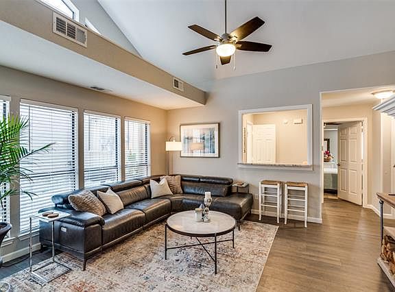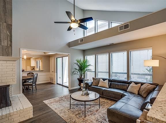 Wonderful North Dallas, ADDISON location! Open floor plan w_ 3 BDRMs and 2 Baths. Great property to lock and leave. Excellent floor plan for most every need! Duel MSTR suites, one up_one down, both w_ WICs. Down stairs BDRM could be office. Living room has vaulted ceilings, WBFP. Updates galore; paint, tile floors, light and plumbing fix, cabinets, granite tops, SS sink. Wet bar w granite w_ under mount sink viewing LA. Updates in baths, included granite, sinks, fixtures. MSTR bath w_his, her vanities, separate shower, tub. Sliding door to charming patio. 2 car rear entry garage. Upstairs HVAC replaced 2020, Down stairs HVAC 2021! Next to N Addison Walking Trail! Community POOL and clubhouse. Add Parking spot