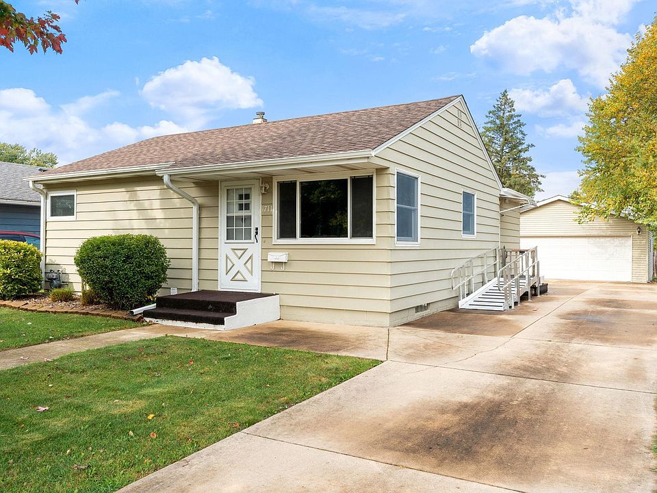 Take a look at this amazingly kept and updated rambler! 3 bedrooms one one level, one of which is vaulted with fireplace that could be used as a primary bedroom or additional living space. Large eat-in kitchen. Two remodeled bathrooms, one with a walk-in shower. Vinyl windows & New Roof! Furnace, AC & Water Heater replaced in 2017. Large 2-car, heated garage, with additional door out the rear. Ramp is negotiable. Schedule your showing today!