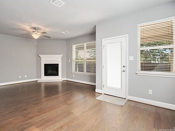 Move-in ready, this 1.5-story home is located in the gated community of Castle Hills, offering both convenience and comfort. The location is hard to beat-just 10 minutes from the airport, within two miles of three HEB grocery stores, and with easy access to all major highways and downtown. The neighborhood itself is a newer gated subdivision where all homes are less than 10 years old. Original owner, no pets and non-smoking. Inside, the open floor plan creates a welcoming flow throughout the first level. The spacious living room features a fireplace and connects seamlessly to the kitchen and breakfast area. The kitchen offers stainless steel appliances, a breakfast bar, generous cabinetry, and plenty of counter space. Outside access from this area makes it easy to enjoy indoor and outdoor living. The primary suite is located on the first floor and includes an ensuite bath with a soaking tub, walk-in shower, and double vanity. Two well-sized secondary bedrooms are also downstairs, providing convenience and flexibility for family or guests. Upstairs, you'll find a large second living area, perfect for a game or play room, along with a dedicated media room. This home is designed with energy efficiency in mind, featuring foam insulation, Energy Star appliances, and low-e3 windows. Recent updates include a new roof in July 2017 and a water heater with replaced pressure tank, elements, and thermostats. Don't miss the chance to make this your next home-schedule your personal tour today!