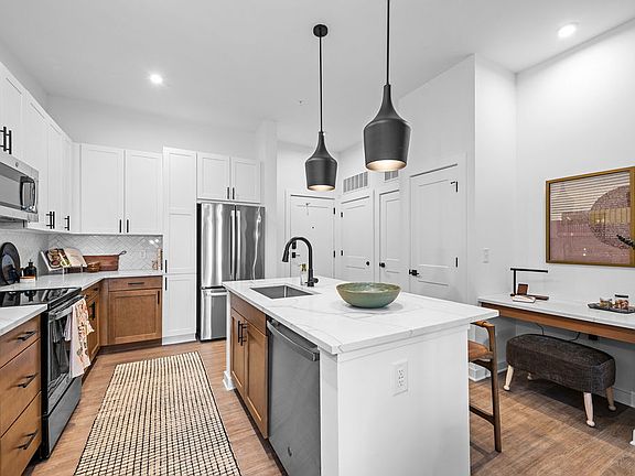 - Exterior features: 12-Foot Ceilings, Appliances, Balcony, Barbecue, Big Green Egg Smoker, Brand New Retail Options, Business Center, Co-Working Spaces, Coffee Bar, Courtyard, Custom Hardware on Cabinets, Cycle Center, Dog Sky Park, Elegant Pendant & Recessed Lighting Fixtures, Floor-to-Ceiling Windows, Flooring: Laminate, Outdoor Fitness Space, Package Receiving, Pet Washing Station, Podcast Studio, Rooftop Deck, Sleek Pendant Lighting Over Kitchen Islands, Spacious Kitchen Islands with Built-In Shelving, Stainless Steel Appliances, Subway Tile Backsplash in Kitchens, TV Lounge, Two-Tone Cabinetry with Contrasting Colors, Undermount Sinks with High-arc Faucets, View Type: Open View, Walkability, Yoga Room