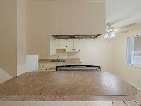 Step inside to discover an open, light-filled living space grounded by tile oversized windows. The updated kitchen features shaker-style cabinetry, and electric stove, built in microwave, refrigerator and a generous breakfast bar or dining area ideal for both everyday living and entertaining.