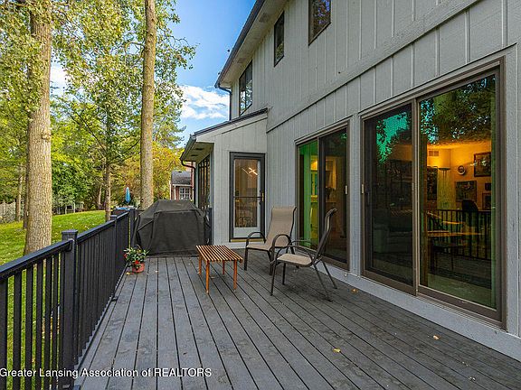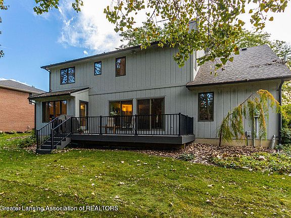 Whitehills, almost 3,000 sq ft. of living space in this one owner home! Enjoy the 4 Bedrooms, 2.5 bath custom built 2-story nestled on a quiet cul-de-sac in East Lansing. Lovely plantings surround this treasured home. Beautiful open foyer with access to over-sized great room complete with cathedral ceilings with special windows, plus access to the main floor library including great bookshelves and French doors. The formal dining room off the foyer is great for entertainment. Gourmet well designed newer kitchen with a spacious center island, hardwood flooring, planning center, 5- burner gas range, microwave drawer, 2 Kitchen Aid full double ovens, 3-door Kitchen Aid refrigerator, gleaming granite counter tops, loads of newer cabinets, note all the amazing drawer space too, plus an informal eating area with access to a fabulous maintenance free deck and the backyard. The family room is oversized for the whole family and more! Anchored by a fireplace with great built ins. Newer double slider doors that bring the outside in. The generous first floor laundry with a window also serves as a drop zone. The attached 2.5 car garage is extra deep for storage, makes this home the perfect first floor. The primary bedroom is large enough for a sitting area and includes a walk-in closet and an updated bath offering a pretty tiled shower with quartz counters and double sinks. Three more good-sized bedrooms plus an updated full bath complete the upstairs. The lower level is ready to be finished, studded in, and stubbed for a bath. Newer A/C 2021. Furnace 2008. Roof shingles 2015. Walking distance to Whitehills elementary and bus lines plus close to shopping and MSU. Fabulous neighborhood to walk in with streetlights and sidewalks, and close to bike trails. This is a home to be treasured.
