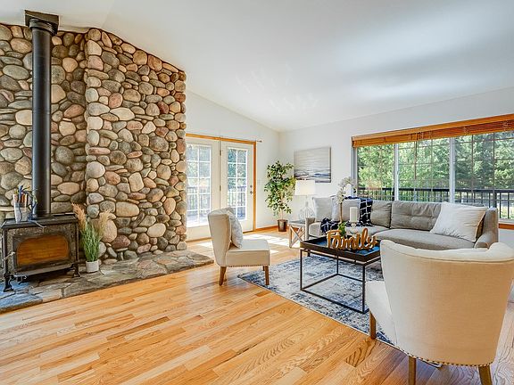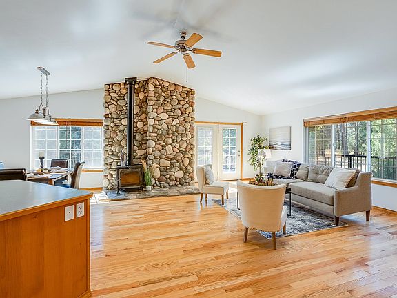 Welcome to your own paradise! Nestled away on 10 acres this home is the perfect getaway from in-town living. All the perks of country living while still being less than 30 minutes from any amenities you could need. This spacious home boasts an open floor plan and vaulted ceilings. With two living room areas you’ll have plenty of space for indoor hosting. The large stonework fireplace is a major focal point of the home. There are four bedrooms including a primary bedroom with en suite bathroom and soaking tub. The daylight basement keeps natural light flowing throughout the home. Step outside a be greeted be either of the two gardens. You’ll want to put your phone away and spend your days exploring the hiking trail or fishing in your own personal creek that runs through the property year round. End your days on the wrap-around deck admiring the pine trees and nature that surrounds you. There is also a large shop to store all of your toys. A darling cottage is also on site for any extra
