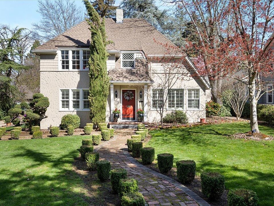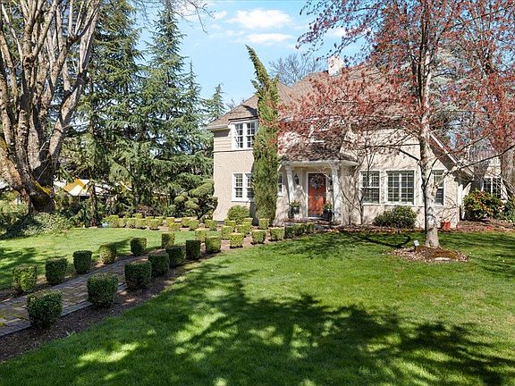 This enchanting storybook home boasts unique architectural details, including 3 gas fireplaces, arched doorways, beautiful handcrafted woodwork & built-in cabinetry, just to name a few. Warm & inviting living room w/abundant natural light. Kitchen has custom cabinets, quartzite counters, island, built-in refrigerator, breakfast nook & secret door that leads to the wine cellar in the pristine basement. Spacious main level master suite w/a spa-like en suite bathroom, featuring a deep soaking tub & elegant finishes. Upstairs you will find a spacious bedroom w/gas fireplace, cedar lined closets & door to huge upstairs outdoor space. 2nd guest bedroom & office are beautiful & filled w/natural light. Detached oversized 3 car garage w/bonus room upstairs. The private backyard is a serene oasis, complete w/deck, water feature, pavilion & quaint paths that evoke a sense of tranquility. Perfect for those seeking a fairytale retreat, this home combines old-world charm with modern comforts.