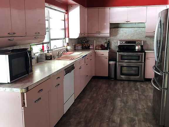 This home is remarkably huge with lots of possibilities.Main home has 3 to 4 bedrooms and 2 to 3 living areas depending on how you want to use them, 2 1/2 baths all rooms are huge with lots of storage with built ins throughout. Guest Quarters has 2 bedrooms, 1 bath, no kitchen but efficiency area with refrigerator & stove. A second Guest quarters with bedroom & bath, no kitchen. Nice Open patio,cute pond, & storage building in back yard area.