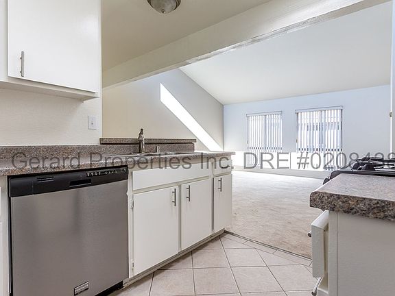 IMPORTANT GUIDELINES: - This property is available NOW and the longest we can hold it is 2 weeks from today - Income requirement: monthly gross income = 3x rent amount, or more. - Good credit and one year minimum lease required. - Non-smoking only. Don't miss your chance to this 2nd floor, penthouse style 2 Bedroom with nobody living above or below (garages below). - Stainless steel sink, dishwasher, and range - Ceramic tile floor in kitchen, entry, and bathroom. - Soaring vaulted ceilings in the living area with several skylights make this a super bright environment. - Mirrored closet doors. - Private balcony off one bedroom. - Private enclosed garage. - New carpet Coin operated washer and dryer on the premises. We have found that 100% of the people that we rent to we speak to on the phone. If you think this property would work for you please pick up the phone and call us.