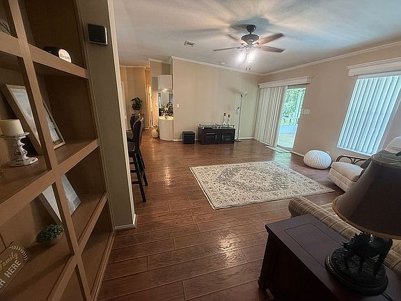 Nestled in the heart of central Florida, this 55+ community combines golf course living, a natural paradise, this 3/2 Furnished move-in ready manufactured home for active adults. This home has an Open Floorplan with an open eat-in kitchen with indoor laundry. Also included is an attached storage room. Relax on the screened porch or the back yard deck with a Sunsetter retractable awning!