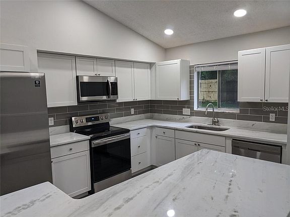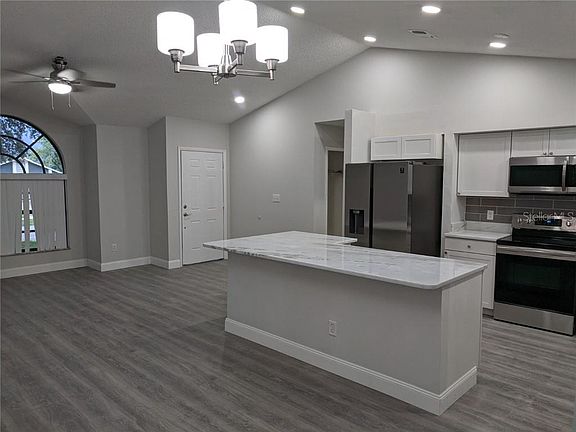 Remodeled Home on Quiet Street with New Roof and No HOA! This 3 bedroom & 2 full bath, 1 story, 1,230 sq ft home in desirable Forest Oaks is right across the street from the neighborhood waterfront park & playground. The home was recently remodeled and features modern updates throughout the home. A new roof was installed in August of 2018 and the entire exterior has been repainted. The two car garage features a long paved driveway for all your guests while mature oak trees shade the front and create a welcoming feel. The front door opens into the family room with cathedral ceilings. You will notice the modern styles immediately. The freshly painted grey walls are accented by brand new, wood style laminate floors and tall white baseboards and chair-rail. The same new, wall colors, flooring and baseboards run throughout the home. The all new kitchen features stainless steel appliances, white wood cabinets, marble style granite counter-tops and sleek, grey back splash. The over-sized matching kitchen island is perfect for entertaining several guests while preparing dinner. This open floor plan features a large dining area with sliding glass door opening to a small back patio. The family room features a large arch style window overlooking the front yard. The large master suite features two large closets, window overlooking the back yard and en suite bathroom with brand new barn style glass door shower, new vanity with huge framed mirror and new toilet. The split bedroom floor plan features two additional bedrooms and full bath on the other side of the home. The large, wood fenced in back yard that is plenty big enough for you to add a pool or create your perfect backyard oasis. Forest Oaks features a lakefront park with playground area. The home is diagonally across from the park on a quiet cul-de-sac. Plus Forest Oaks has NO HOA or CDD FEES! Located in Ocoee, Forest Oaks is perfectly situated between Clarcona-Ocoee Road and Colonial Drive providing you with quick access to a variety of shopping, dining and entertainment options. Both Prairie Oaks Elementary and Prairie Lake Park are just outside the entrance to the neighborhood. This one won't last! Call and schedule your showing today!
