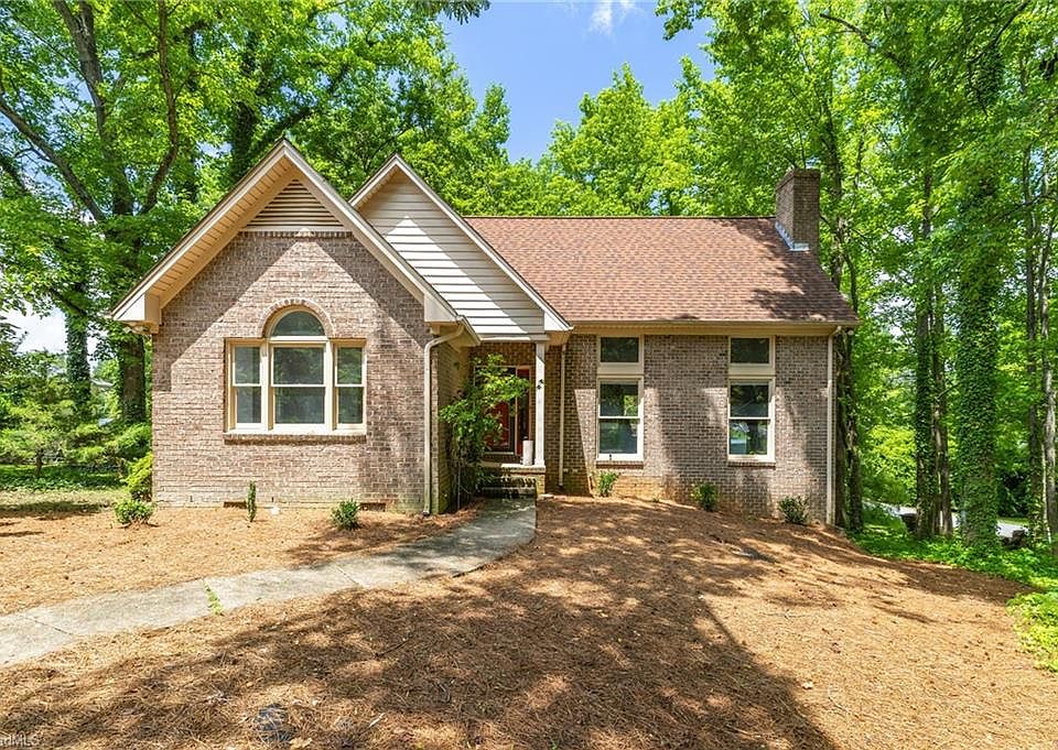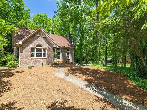 Wonderful location, home has tons of character! Unique property with lovely wooded views. Living room has ceramic tile floors, built-in shelves, exposed beams, brick fireplace. Open contemporary floorplan with sunny eat-in kitchen with island, gas cook top and tile counters. Lots of cabinet space. Loft-style primary bedroom with new bathroom upstairs. Bedroom on main level with access to full bath and 2 closets. Side yard parking with garage/corner lot. Tons of storage in basement. roof only a few years old.