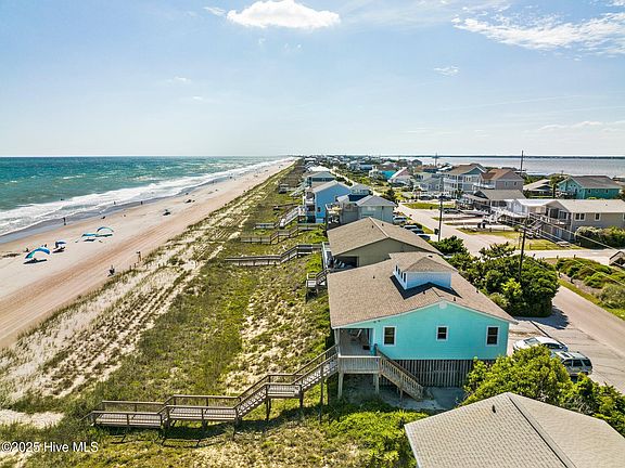 Ocean front single family home with huge rental income. Already getting bookings for next season! Home sits on beautiful, high dune, ocean front lot. Best oceanfront covered porch on EI. Featuring 4 bedrooms, 2 baths with nice open plan with panoramic oceanfront views. Loft upstairs with two beds. The 3rd full bathroom is under the house by the utility room with separate entrance. Newer roof, new Hardee Plank siding, new decks, walk way and stairs. New oceanfront sliding doors. Great nostalgic home, the way a beach house should be. Cypress walls and LVP throughout. Plenty of parking. Turn key and furnished. Low flood insurance ! VRBO listing advertised to sleep 12 people (Listing #62512). Square footage does include loft. Terminex termite bond. Owner is a NC Realtor. Sunday turn day.
