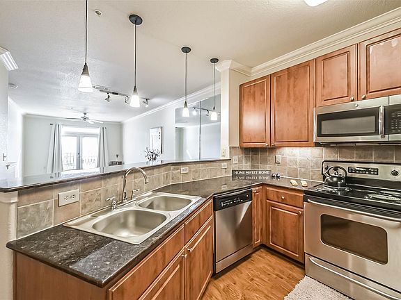 THE VALENCIA MEDITERRANEAN STYLE-MID RISE. Beautiful One Bedroom- Condo-. LOCATED ON TOP LEVEL. Conveniently located near elevator and parking. Granite counters, NEW FLOORING. Stainless appliances. Washer/Dryer. Open Concept- Kitchen to Living area. Includes a desk niche. Very spacious bathroom w/garden tub, leading to huge walk in closet. Dining table included. NEW CARPET IN BEDROOM. The community includes 24/7 guard attendant. Clubhouse. features: Large TV, billiard table and computers access. State-of-the -Art Fitness Center-A must see! Resort style pool, jacuzzi and grilling area. 2 level parking garage. Location -Location--NEXT DOOR TO METRO RAIL! Close by: Texas Medical Center, NRG Stadium, Rice, UT and Baylor Universities, Rice Village & more! Come by and take a private tour today!