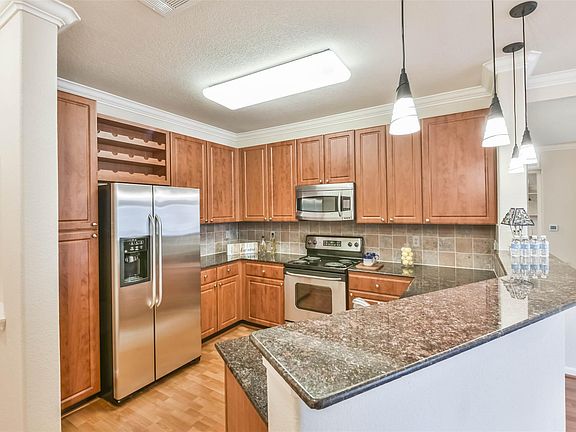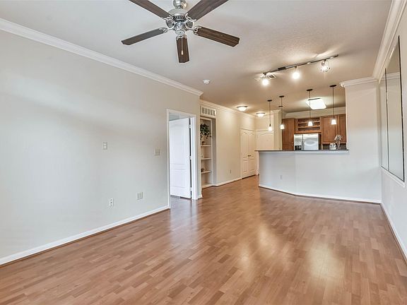 THE VALENCIA CONDOS, MEDITERRANEAN STYLE-MID RISE. Beautiful One Bedroom- POOL VIEW-TOP LEVEL. Conveniently located near elevator and parking. NEW AC 2025. Granite counters, Stainless appliances-NEW DISHWASHER 2024, Front load Washer/Dryer. Built-in bookshelves- Open Concept- Kitchen to Living area. Laminate floor in bedroom & living room. Desk niche in bedroom. Very spacious bathroom w/garden tub, leading to huge walk in closet. The community includes 24/7 guard attendant. Clubhouse. features: Large TV, billiard table and computers access. State-of-the -Art Fitness Center. Pets welcomed community has dog walk area. Resort style pool, jacuzzi and grilling area. 2 large levels enclosed parking garages. Location -Location--NEXT DOOR TO METRORAIL! Close by: Texas Medical Center, NRG Stadium, Rice, UT and Baylor Universities, Rice Village & more! Come by and take a tour today!
