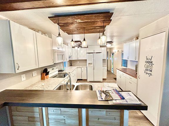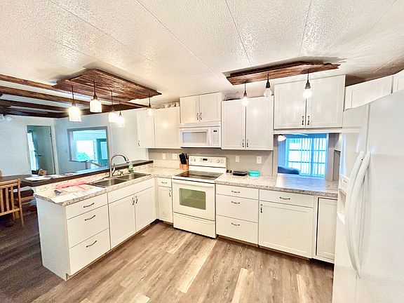 This partially furnished 2-bedroom, 2-bathroom home in the desirable Sunny Pines community offers an open floor plan, ceiling fans throughout, and a bright Florida Room perfect for relaxing. Enjoy the convenience of a laundry room, central A/C, and a roof that's just two years old. The home features a mix of carpet and laminate flooring, a patio, garage, carport, and a storage utility shed. Hurricane shutter provides peace of mind. Just minutes from shopping, dining, and entertainment, this home offers both comfort and convenience. The Generac Generator is negotiable. Don't miss out on this cozy retreat! **Seller can provide owner financing. Lot Rent - $675 includes amenities, lawncare and garbage. Call for a showing today!