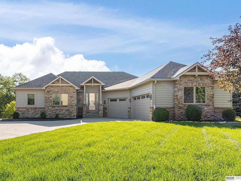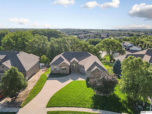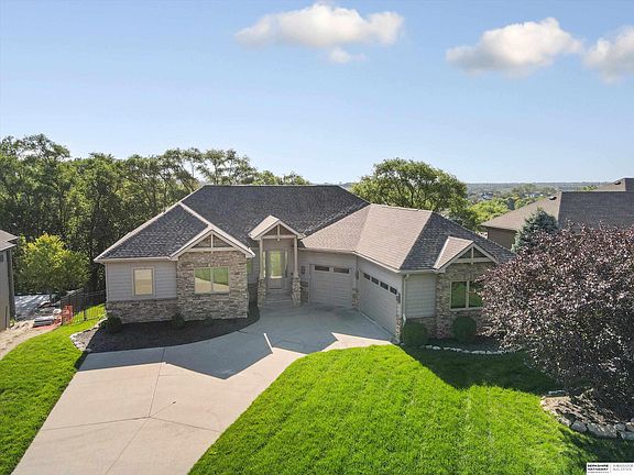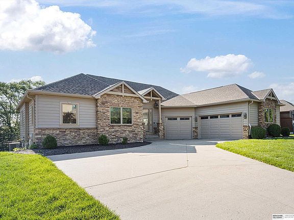 Contract Pending Nestled in the picturesque neighborhood of Ranch View Estates, resides a remarkable walk-out ranch backing to trees. Step through the front door to find soaring vaulted ceilings & a wall of windows providing an abundance of natural light, creating a warm & inviting ambiance. The spacious eat-in kitchen has a large walk-in pantry, granite countertops, & SS appliances. The primary suite is a luxurious retreat complete w/whirlpool tub, spacious tiled shower, large walk-in closet & access to the deck, so you can enjoy your morning coffee. The walk-out basement provides an additional level of living space & endless possibilities for entertainment. The large rec room is complete w/fireplace & wet bar including a dishwasher &wine fridge. Stepping outside, you’ll discover private oasis which can be enjoyed from the back deck or the large patio. Walking distance to all Elkhorn schools, you will not find a better value than this plus low tax levy! Updates: new carpet, & roof/gut