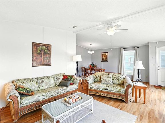 ***OFFERING 6 MONTHS FREE LOT RENT UP TO $5,100 TO BUYERS COMING IN AT FULL ASKING PRICE*** This home isn't just a place to live; it's a launchpad for the next exciting chapter of your life. Imagine waking up to panoramic water views of both Lake Evelyn and Lake James. You'll enjoy the perfect blend of serenity and community in this beautiful 2-bedroom, 2-bathroom home in the highly sought-after 55+ community of Crystal River Village. The open floorplan is an entertainer's dream, flowing effortlessly from the kitchen to the living area, making it ideal for hosting friends and family. Or, simply unwind and enjoy a quiet evening while taking in the breathtaking sunsets from your own home. Your private screened patio is the perfect spot to sip your morning coffee and breathe in the fresh air, creating a tranquil start to every day. This move-in ready home truly has it all, whether you're looking for more space, less space, or simply the right space. Crystal River Village is a community that truly understands the meaning of active living. The extensive list of amenities ensures there's always something to do: • Relaxation & Recreation: Heated in-ground pool, newly renovated clubhouse, screened community lanai on the lake, and a fire pit. • Sports & Games: Pickleball, shuffleboard, bocce ball, horseshoes, and croquet. • Hobbies & Fun: Billiards, library, hobby rooms, and an exercise room. Come see for yourself why this home and community are the perfect place to start your next adventure. Schedule your private tour today! (Furnishings negotiable)