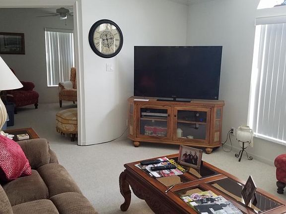 SEMINOLE COVE Furnished 2/2 on concrete pad with long carport. Open kitchen with large pantry and breakfast area, includes all appliances, washer and dryer. Formal dining room, family room and large master bedroom with upgrades to both bathrooms. Utility room and awnings on windows. Nicely landscaped. Move in ready. 55+active community, clubhouse pool