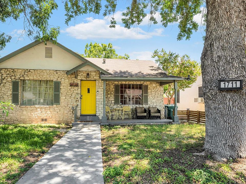 Welcome home to this charming Eastside cottage offering 3/2 front house, back house accommodations with en suite bath, AND excellent proximity to Downtown, Southtown, King William, Hemisfair Park, and everything our fabulous Eastside has to offer. The nicely-appointed space offers rewired electrical, original hardwood floors, lovely archway, and plenty of natural light. The spacious primary offers vaulted ceilings and an en suite with a walk-in shower. Two secondary bedrooms create flexibility for guest room and/or office space. Don't miss the opportunity to make this sweet house your own!
