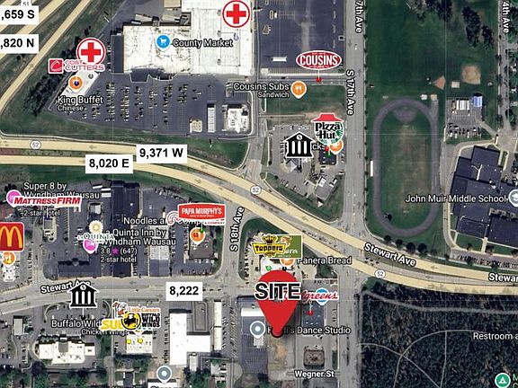 Property Features ? Excellent location near high traffic intersection with easy and safe access ? Excellent visibility and high traffic counts ? Surrounding businesses include Walgreens, Cellcom, County Market, Furniture and Appliancemart, Accent Window Fashions, several restaurants and Marathon Park Details Commercial redevelopment land in busy retail corridor on Wausau?s growing west side.
