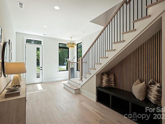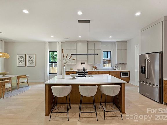 Welcome to this striking modern new build in the heart of Oakhurst—one of Charlotte’s most dynamic and desirable neighborhoods. This 4BR, 2.5BA home pairs bold architectural form with soft, refined interiors. Wide-plank oak floors, custom woodwork, and matte black fixtures set an elevated tone throughout. The open-concept layout includes a chef’s kitchen with quartz countertops, premium appliances, and sleek cabinetry. A sculptural staircase and designer lighting add drama and warmth. The primary suite offers a spa-like bath with dual vanities, walk-in shower, and thoughtful finishes. Natural light pours in through expansive black-framed windows, and the private backyard is ideal for entertaining or unwinding. Steps from local favorites like Common Market and Night Swim, with effortless access to Plaza Midwood, Cotswold, and Uptown—this is modern living without compromise.