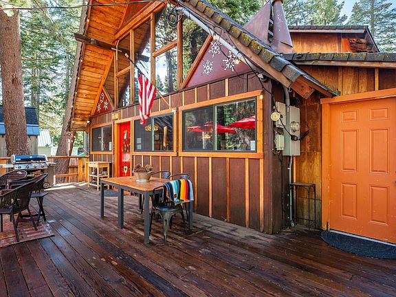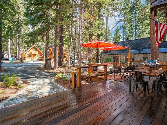Nestled in the heart of Tahoe Park on Lake Tahoe’s West Shore, this beautifully remodeled A-frame seamlessly combines modern comfort with classic mountain charm. Boasting 3 bedrooms and 2 bathrooms, this home is a haven for those seeking a getaway in the desirable neighborhood of Tahoe Park. Step inside to find a thoughtfully redesigned interior, where high ceilings and warm knotty pine accents create an inviting atmosphere. The open-concept living space features a cozy wood stove, perfect for snowy evenings, and flows effortlessly into the dining area and modernized kitchen, ideal for entertaining family and friends. Outside, the owners have transformed the property into a serene oasis. Extensive landscaping enhances the natural beauty of the lot, while a spacious new deck offers a perfect setting for summer barbecues, stargazing, or simply soaking in the fresh Tahoe air. This prime location is just minutes from Tahoe Park Beach, Sunnyside Resort, and FireSign Café. The nearby bike trails, hiking paths, and proximity to world-class skiing at Palisades Tahoe and Alpine Meadows—just 15 minutes away—make this property an outdoor enthusiast’s dream. Whether you’re looking for a year-round home or a seasonal getaway, this cabin offers the best of Lake Tahoe living.