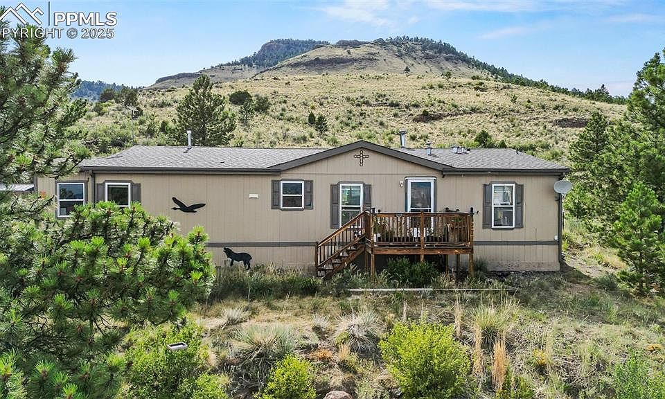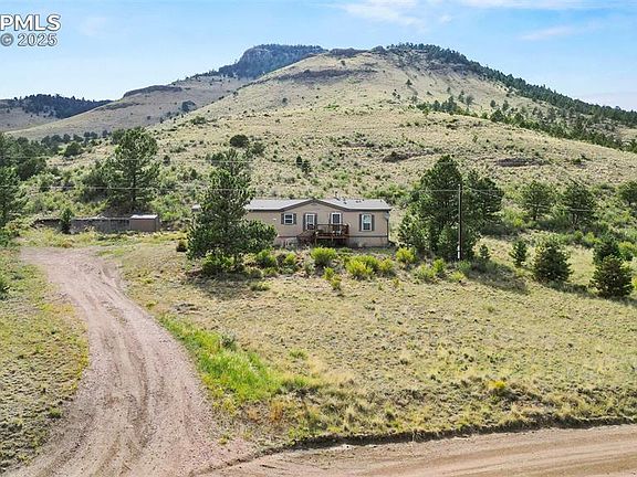 Welcome home to your private mountain sanctuary in picturesque Guffey, Colorado! Set on an expansive 22+ acres, this inviting home offers main-level living perfectly framed by stunning panoramic mountain views. Step inside and be greeted by the spacious, open-concept kitchen—ideal for entertaining friends or whipping up a quiet meal. Unwind in the welcoming living room, warmed by a cozy wood-burning stove that promises snug evenings even on the chilliest nights. Your serene primary retreat features an attached 5-piece bath designed to indulge and recharge after adventurous mountain days. The outdoors here are simply unmatched—imagine sipping your morning coffee while gazing across sprawling vistas, or stargazing at night without city lights to dim nature's brilliance. Your slice of Colorado paradise awaits! Just close enough to civilization for convenience, yet far enough away to whisper "privacy." Don't wait too long—properties with this much charm and character don’t linger.
