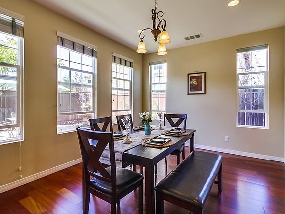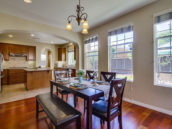 Open house : 1-4pm, Saturday (10/10)! Beautiful curb appeal with stone decorated porch! Bright and airy! Open floor plan with hardwood throughout! No carpets! Highly upgraded spacious kitchen with center island with granite countertop, SS appliances, and top to bottom backsplash tile. Upgraded master bath with jetted tub. Tranquil backyard with putting green and fruit trees. Elevated lot with mountain view. 3 car tandem garage with built-in cabinet! Walking distance to award winning Monterey Ridge Elementary and parks. Close to shopping and restaurants!