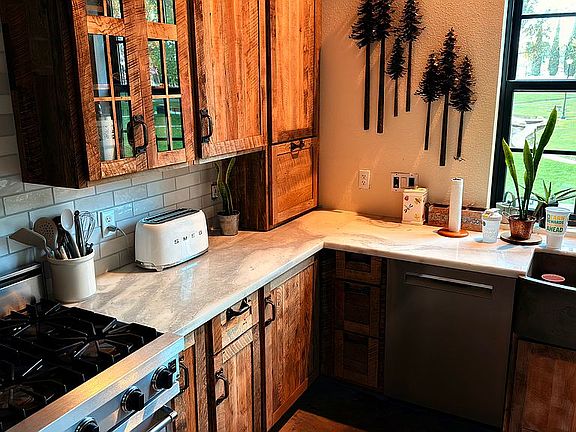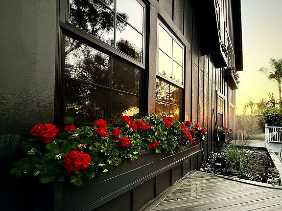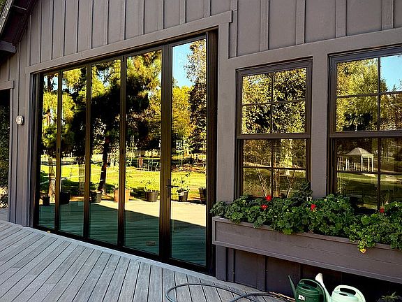 This modern farmhouse in Yorba Linda feels like a private lodge on the edge of a national park—nestled beside wide-open parkland with no rear neighbors and panoramic views of trees, trails, and green space. Its dramatic architecture features black board-and-batten siding, warm timber accents, and a tree-like ornamental front porch that echoes the surrounding landscape. Wrapped in serenity and bathed in natural light, the home offers effortless indoor-outdoor living with a wraparound deck, direct access to open lawns, and timeless design that blends nature, privacy, and architectural charm.