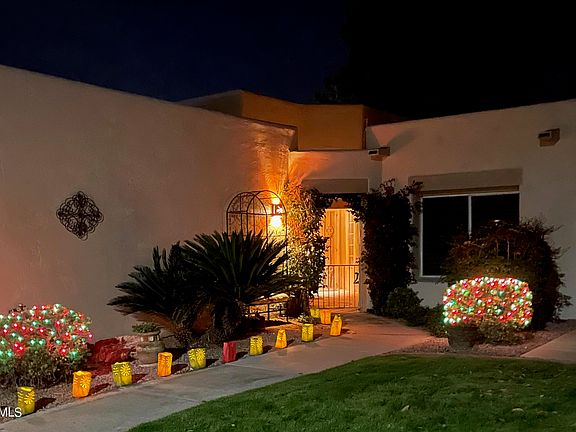 Great Territorial Taos model bordered on two sides by lush green spaces. 2 bd 2 ba PLUS den! Inside you will find Vaulted ceilings, loads of high windows. Updated Kitchen with painted cabinets and granite counters. Wood look tile floors, plantation shutters too! HVAC 2021. Lots of built-in storage in the garage. The back patio gives you plenty of room to entertain or just relax over breakfast and a cup of coffee, with some privacy. Sun Village is a 55+ Gated, Resort Style Community. Enjoy the 18 hole par 3 golf course, gigantic heated pool & spa, pickleball, tennis, fitness gym, woodshop, billiards, onsite entertainment in our ball room and onsite restaurant! Sun Village, is a gated, security guarded, age 55+, community, in the city of Surprise, Arizona. This small community is made up of just under 1400 homes and condominiums. The Sun Village Community has an 18 hole, par three "no-"riding" golf course, an heated swimming pool and spa, tennis, pickle ball and shuffleboard courts, horseshoe pits, an exercise room, a billiards room, sewing and crafts rooms, and a ballroom where national and international entertainment can be enjoyed.