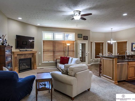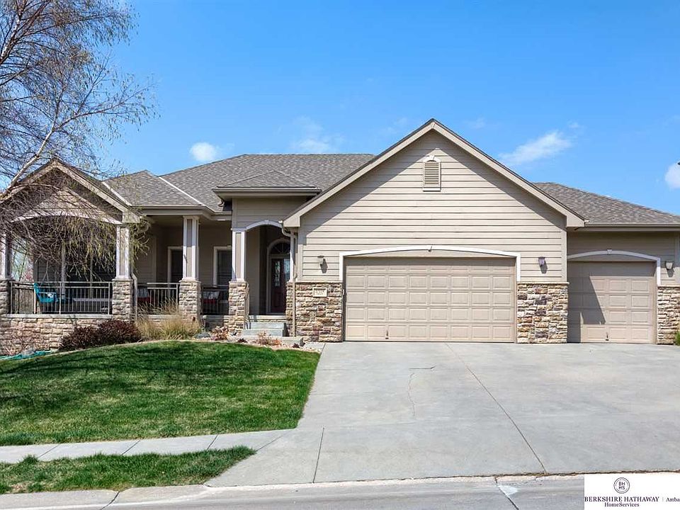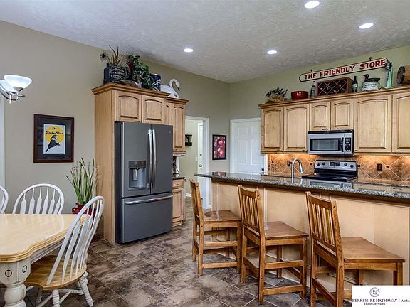 AMA Lovely custom built 5 yr old ranch home. South facing, covered front porch. 5/3/3. Granite island and counter tops, walk-in pantry, maple cabinets & stainless appliances & awesome tile back splash. Locker area at back entry. Separate laundry rm. Large family room w/ fireplace. All season room. Spacious rec-room with large wet bar kitchen area with room for full size refrig. Garage is finished and has gas hook up for heater.
