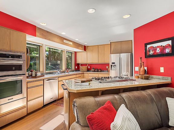 A bold statement in NW Contemporary design by renown Seattle architect Wayne Fricke, custom-crafted for the luxuriant hillside setting, with seasonal views of the Cascades. Treehouse-concept reverse floorplan, with bedrooms at the top, and gathering rooms below, all centered around the dramatic great room with its 3-story ceilings and dazzling wall of windows. Quiet. Private. An ethereal retreat backing to a 14-acre wooded greenbelt. Beautiful lines. Expert craftsmanship. Endless possibilities.
