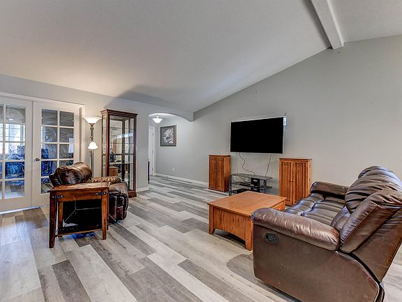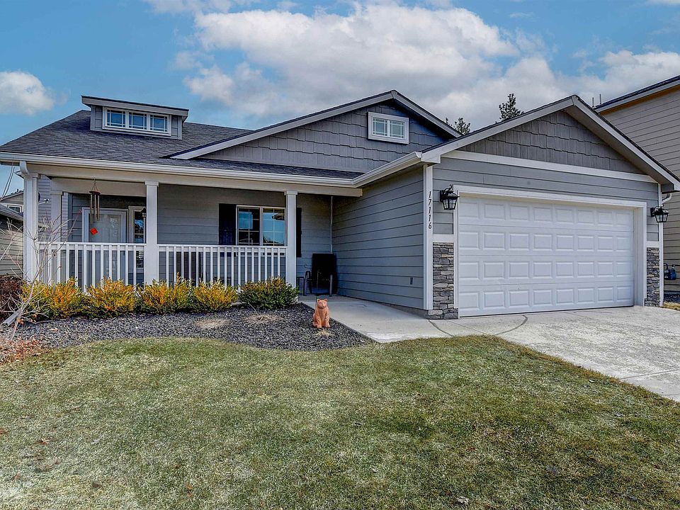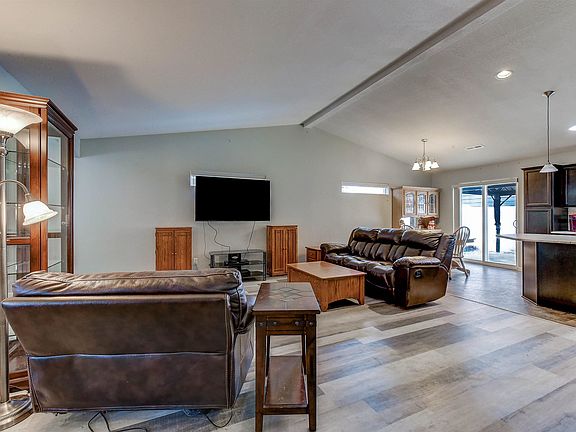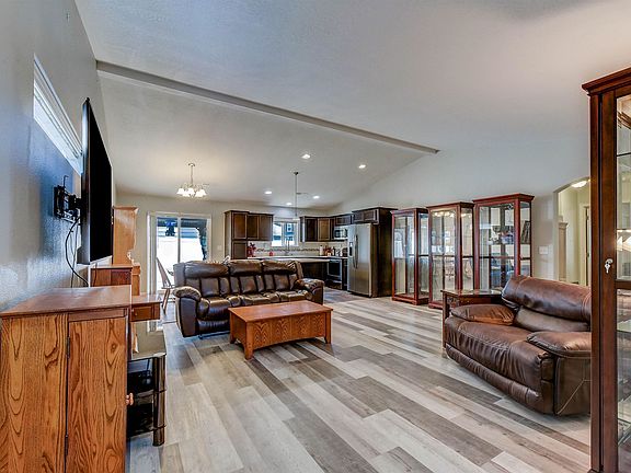 Welcome to your dream home with a welcoming covered front porch, featuring 3 spacious bedrooms, 2 bathrooms, & a 2 car garage. The master bedroom boasts a 3/4 bathroom w/dual sinks, an expansive walk-in closet, & a serene ambiance perfect for relaxation. The heart of this home is the kitchen, equipped with stainless steel appliances, an island w/cozy eating bar, & a roomy pantry for all your storage needs. The adjacent informal dining area, with a sliding glass door leading out to the back patio, provides the perfect space for casual meals & gatherings. The great room is a warm & inviting space, ideal for entertaining guests. Step outside on the spacious 10x10 back patio & immerse yourself in the breathtaking surroundings.For your convenience, both entrances have "zero step entry," making it easily accessible. The fully fenced backyard offers privacy and is the perfect place for outdoor activities & relaxation. With thoughtful design and meticulous attention to detail, this home is sure to impress!