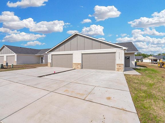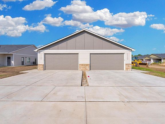 This beautifully crafted twin home features 3 bedrooms, 2 bathrooms, and a spacious 2-car garage. Step through the wide front door into a welcoming entryway with a convenient coat closet, leading into the living area complete with an electric fireplace. The open-concept design includes a bright kitchen and dining area with vaulted ceilings, perfect for both everyday living and entertaining. The kitchen boasts a walk-in pantry, quartz countertops, a center island with an eating bar, and stainless steel appliances. Step outside through the side patio door to enjoy the patio and backyard space with sod, sprinkler system, fully fenced yard on a shared irrigation well. The laundry room is located just off the garage and includes a drop zone for added convenience. General and special taxes have not yet been fully assessed yet. Estimated specials are approximately $180/month per side. HOA details are still being finalized, with fees to be determined. Purchase one side or both—ideal for multi-generational living or as a great investment opportunity! All information is deemed reliable but not guaranteed.