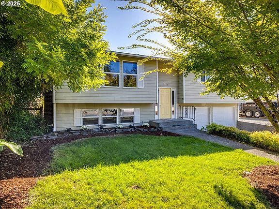 This inviting mid-century split-level home has been thoughtfully updated over the years, but new carpet and a new water heater have just been been installed, as well as fresh new interior paint. The spacious living room features a cozy fireplace, perfect for gathering on cool evenings. The dining room, with its elegant French doors, opens to a covered rear deck, ideal for outdoor relaxation. The island kitchen includes some stainless steel appliances, making it a functional space for cooking and entertaining. The family room in the basement is enhanced by an EPA-certified woodstove insert, providing warmth and comfort. This home features three bedrooms, including a large primary suite with a walk-in closet. The laundry room conveniently has built-in cabinets, and a utility sink. The basement half-bath offers potential for expansion, with a drain already in place under the floor for a tub addition. Outside, the large side yard includes a flat crushed-rock 25' x 43' parking area perfect for RVs or boats, along with a 10' x 23' metal carport and a large 10' x 15' shed for additional storage. Additional highlights include vinyl windows, gas heating, and central AC, ensuring comfort year-round. Located on a low-traffic, non-through street, this home is near miles of hiking trails at Powell Butte Nature Park. A home warranty is included for peace-of-mind.
